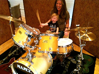 Oh, and on a side note- my son is a drummer. He has always been interested in piano, plucking the guitar and slapping the bass. But when I sat him behind the huge drum kit and placed the sticks in his tiny hands- he went wild! His smile was ear to ear as he banged away at any drum or cymbal his arms could reach. It was the perfect end to a groovy day in the studio... I think we may have to go on the road as the Partridge family instead of Wall of Tom. Of course, there is still a chance our little boy will become a race car driver.